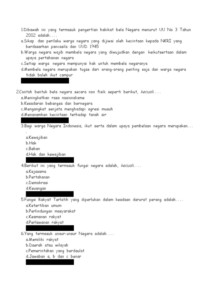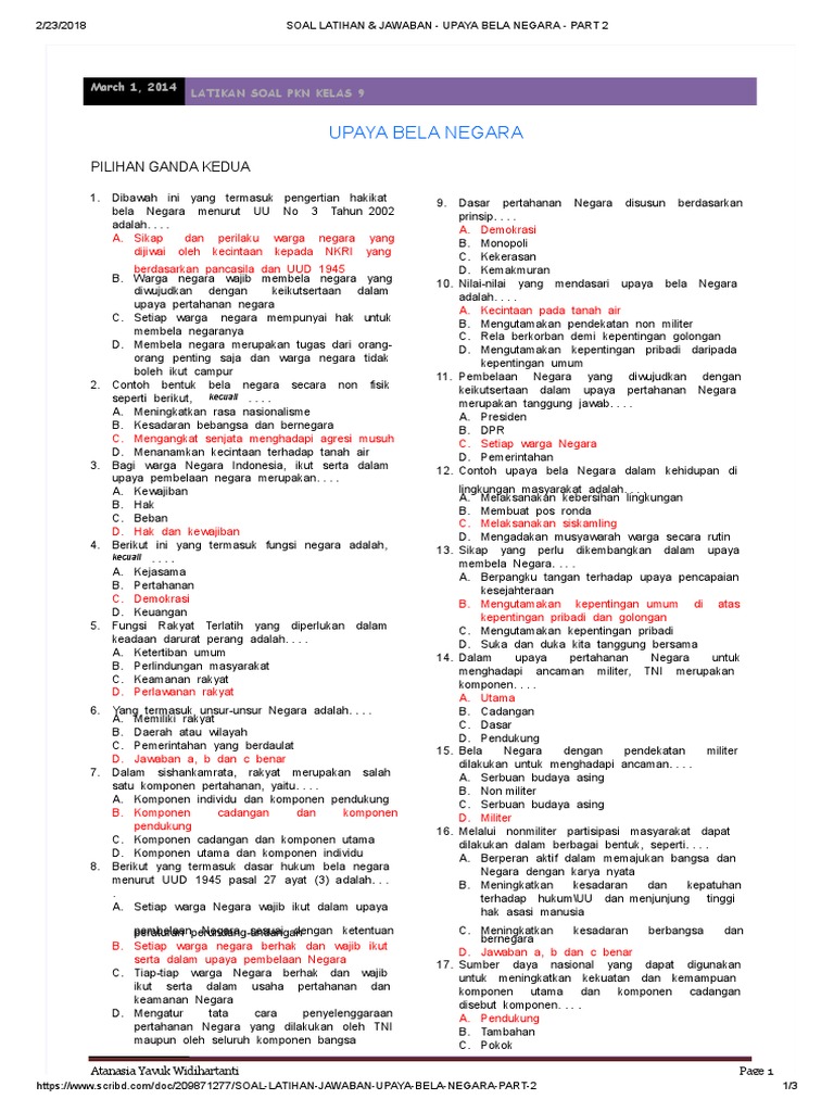 Soal Latihan Jawaban Upaya Bela Negara Part 2 Pdf